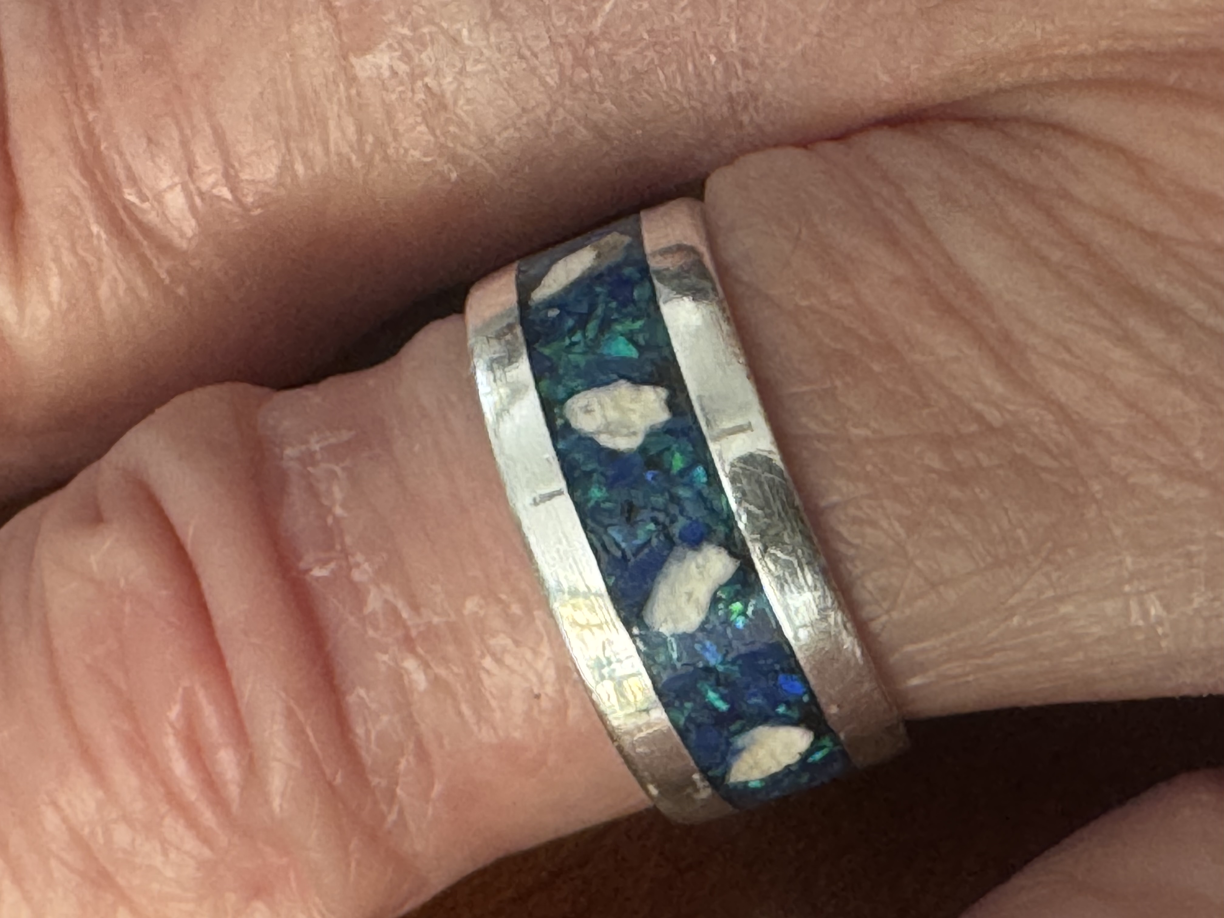 My beautiful ring made for me by Neil Slack containing some of my darling grandsons Kieran Smith ashes and engraved with his name.